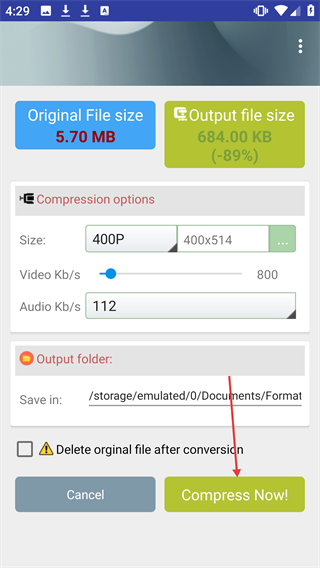 2、在视频压缩设置页面,配置好压缩选项后,点击【CompressNow!】按钮,开始压缩任务。