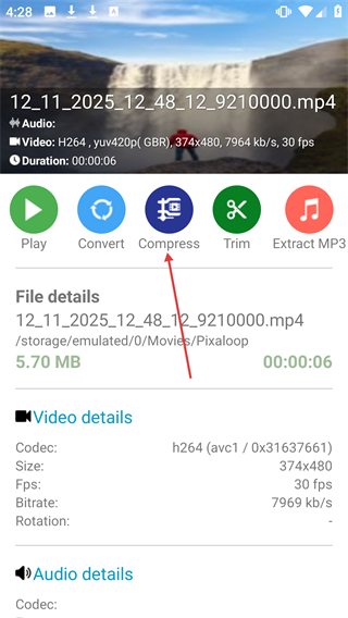 1、在视频详情界面,点击【Compress】按钮,进入视频压缩设置页面。