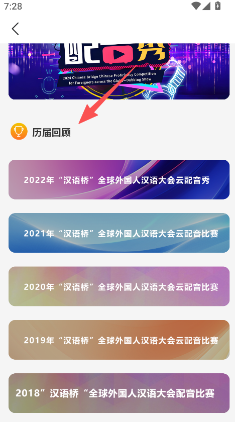 2、拥有历届回顾功能,可查看2018年至2022年多届配音比赛内容,回溯汉语文化交流历史。