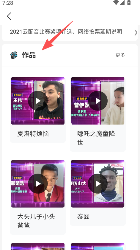 3、进入作品板块,观看配音视频,感受汉语文化魅力。