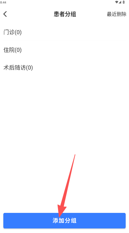 2、在全部患者页面点击“患者分组”橙色图标进入分组管理界面。