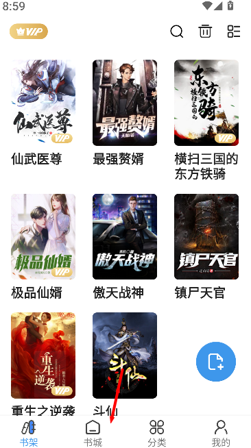 1、打开《免费 TXT 阅读器》软件,在首页顶部导航栏或底部功能区找到 “书城” 入口,点击进入汇聚海量正版小说的书城页面,页面会展示热门榜单、分类导航等内容。