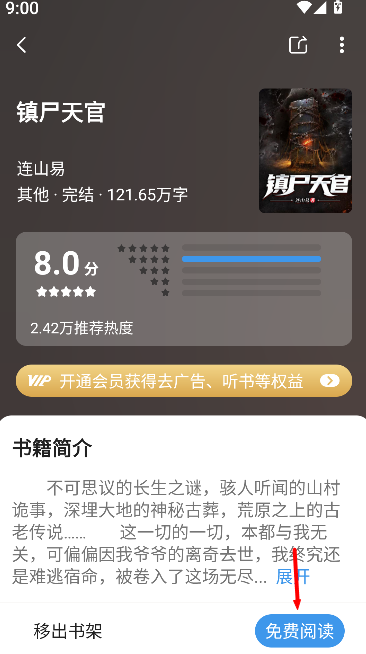 3、在筛选后的书籍列表中,通过封面、书名或简介挑选目标书籍,点击书籍封面进入详情页,找到显著位置的 “免费阅读” 按钮并点击,即可直接进入阅读界面开始畅读。