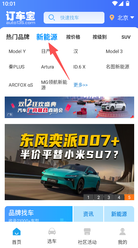 1、板块清晰,新能源、参数配置分类明确,用户查找车型高效,购车选择更精准。