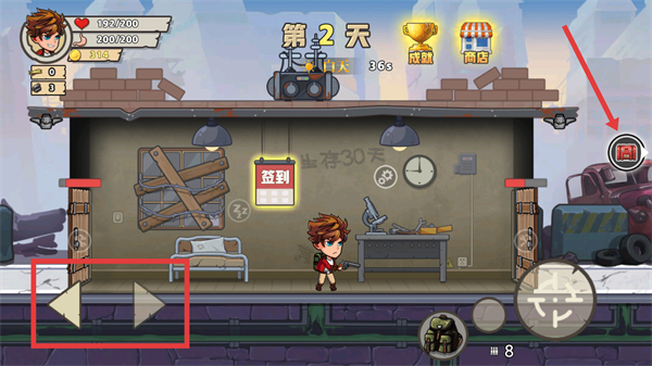 4、通过左侧移动按钮控制角色移动,前往箭头所指【物资箱】获得物资。