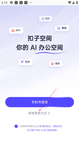 1、在扣子空间登录页,点击【其他登录方式】,展开更多登录选项。
