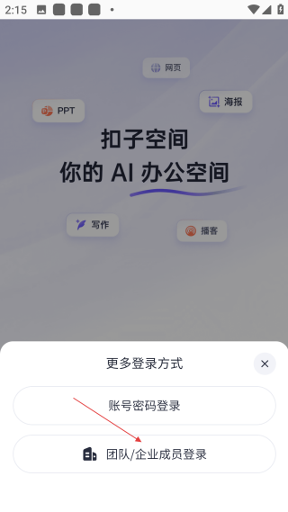 2、在更多登录方式中,选择【团队/企业成员登录】,进入对应页面。