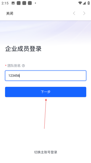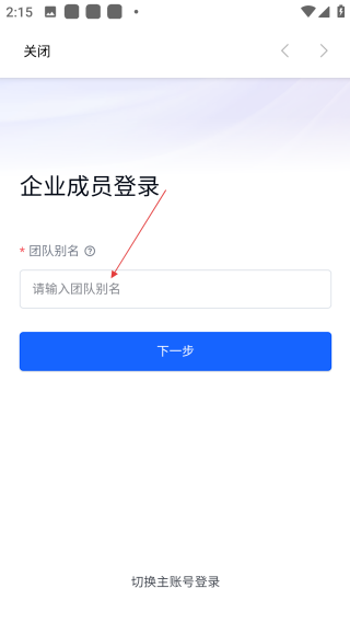 3、在企业成员登录页的输入框中,填写【对应的团队别名信息】。