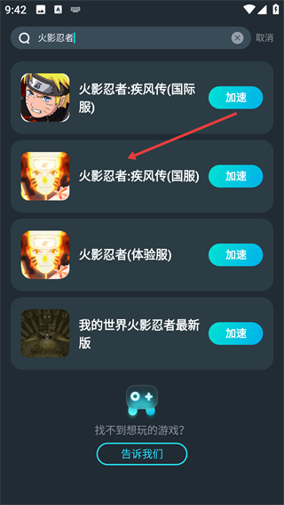 3、在搜索结果中选择【火影忍者:疾风传(国服)】选项,进入该游戏的详情页面。