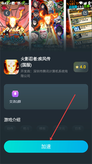 4、在游戏详情页面点击【加速】按钮,启动游戏加速功能。