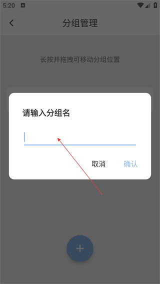 3、在【分组管理】页面,点击底部【+】按钮,可触发添加新分组的操作。