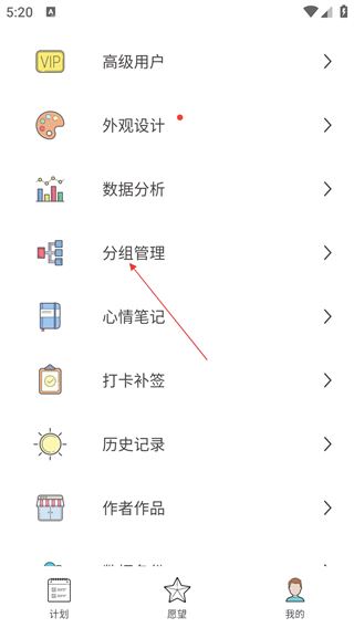2、在个人功能界面中,选择【分组管理】选项,进入分组的管理页面。