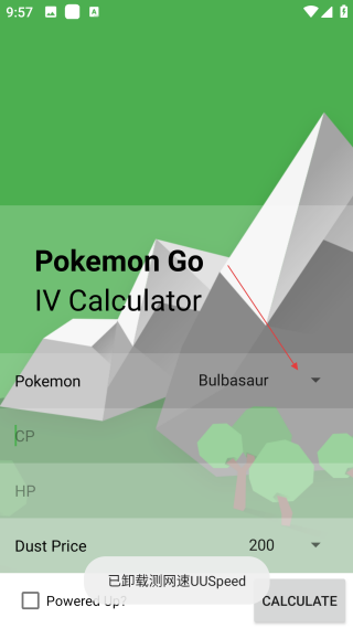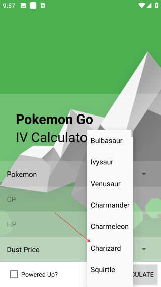 1、在计算器界面,点击【宝可梦选择框】,展开宝可梦列表进行选择。