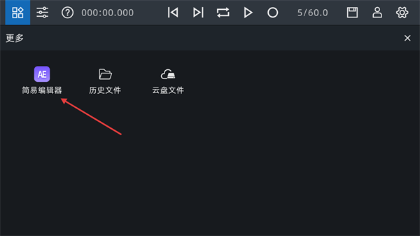 2、在更多选项中,点击【简易编辑器】,进入简易音频编辑界面。
