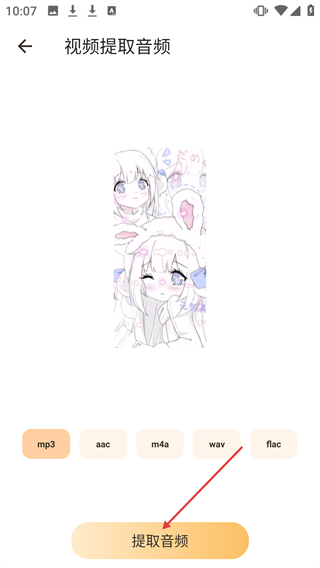4、在视频提取音频界面,选择音频格式后,点击【提取音频】按钮,完成音频提取操作。