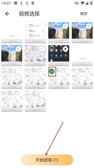 3、在视频选择界面,选择需要提取音频的视频后,点击【开始提取(1)】按钮,进入提取环节。