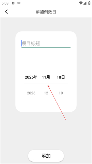 3、在【添加倒数日】页面,填写项目标题并选择日期,完成信息设置。