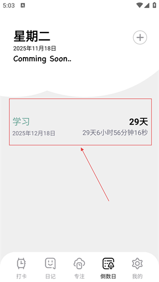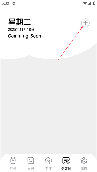2、在倒数日页面,点击右上角【+】按钮,启动添加新倒数日的流程。