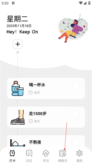 1、在主界面点击底部【倒数日】选项,进入倒数日功能页面。
