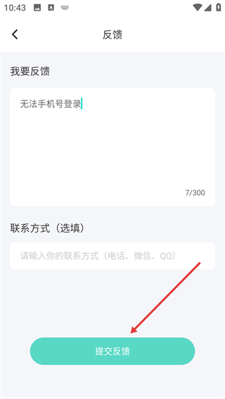 3、在反馈页面的“我要反馈”输入框中输入反馈内容,如“无法手机号登录”。