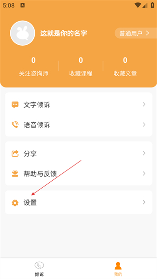 2、在个人页面中,选择【设置】选项,进入应用的设置功能界面。