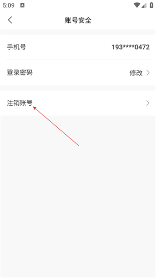 4、在账号安全页面,可查看账号信息,选择【注销账号】选项启动账号注销流程。