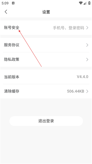 3、在设置页面,点击【账号安全】选项,进入账号相关的安全管理界面。