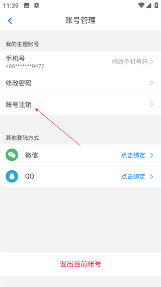 3、在账号管理页面,点击【账号注销】选项,进入注销流程的提示界面。