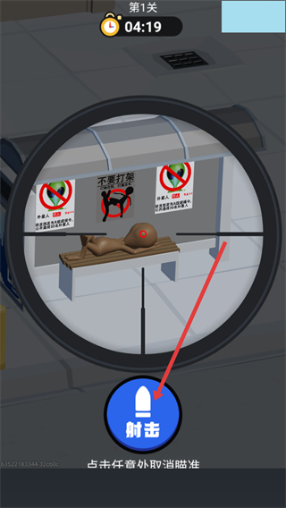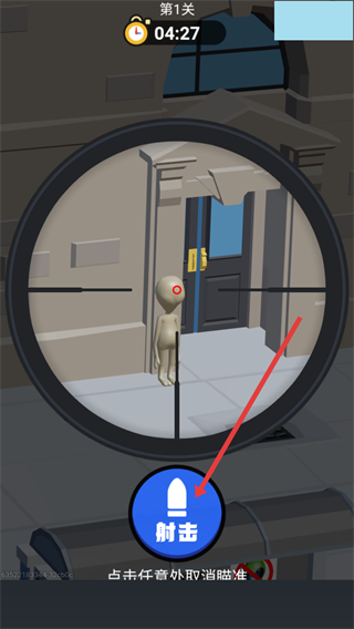 2、进入第1关后点击【点击瞄准】按钮,进入瞄准模式。
