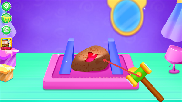 1、使用锤子处理带有红色部分的石块,露出内部宝石。