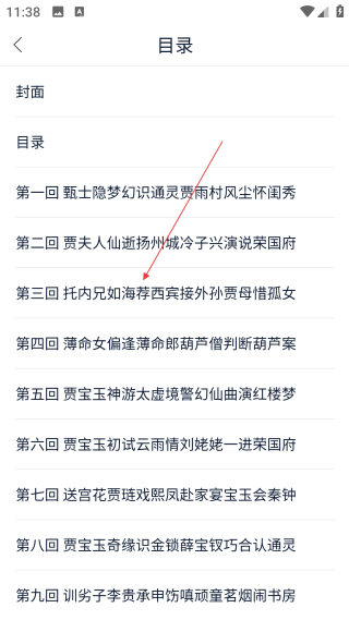 4、在目录页选择【目标章节】,即可进入喜欢的章节开始阅读。