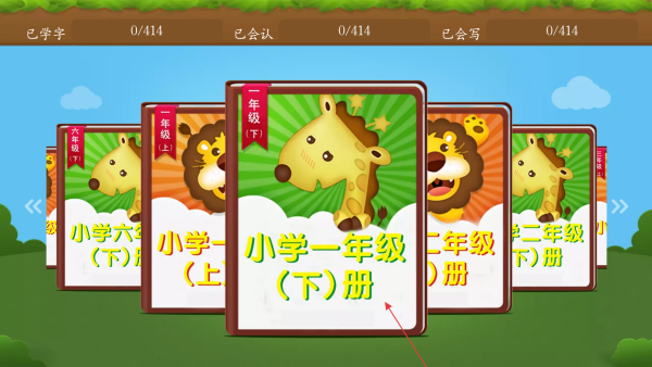1、在年级选择页,选择【目标课本】,进入对应年级的识字学习页。