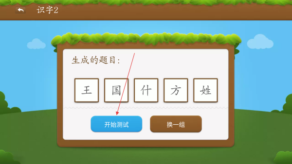 3、在练习界面点击【开始测试】,获取对应的听音认字题目。