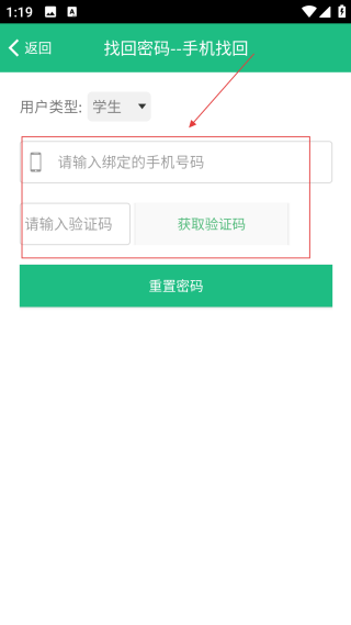 3、在手机找回页,输入【绑定手机号并获取填写验证码】,准备重置密码。