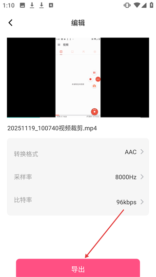 3、设置格式等参数后点击【导出】按钮,完成音频导出。