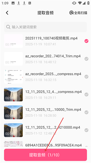 2、选择视频后点击【提取音频】按钮,开始提取音频。