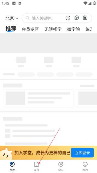 1、在首页点击底部【课程】,进入课程列表的浏览选择页面。