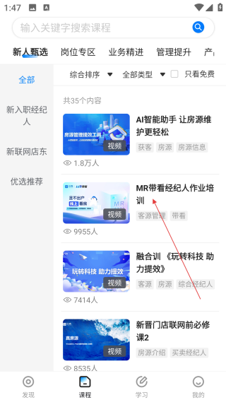 4、持续汇聚最新、最前沿的房产经纪专业知识与行业动态,打造近千门实用业务好课,全方位赋能从业者提升业绩、实现职业突破。