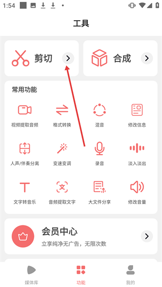1、在工具界面点击【剪切】功能,进入剪切音乐流程。