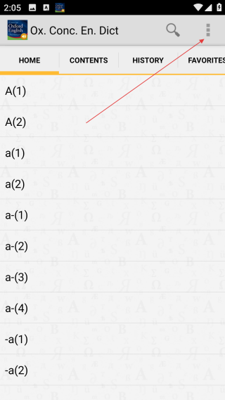 1、在词典首页,点击【右上角菜单按钮】,展开功能选项的下拉列表。