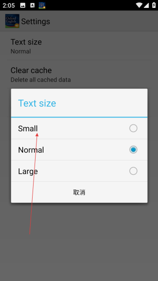 3、在设置页点击【文字大小】,打开文本大小的选择弹窗。
