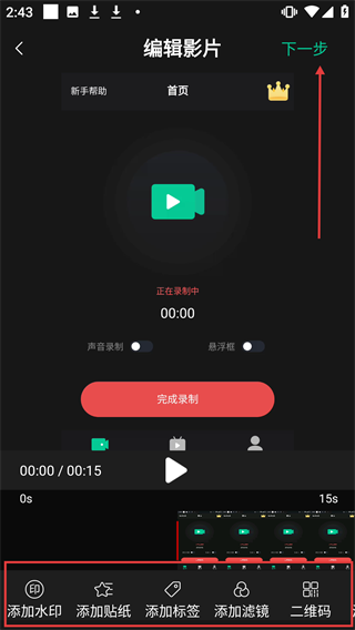 4、添加水印等编辑完成后,点击【下一步】,继续视频编辑流程。
