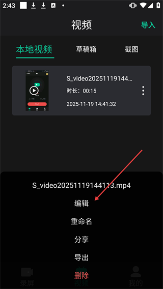 2、在弹窗中,点击选择【编辑】,进入编辑影片流程。