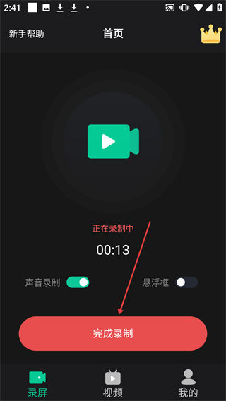 4、录屏完成后,点击【完成录制】按钮,结束录屏操作。