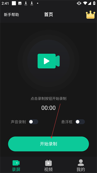 2、进入录屏首页后,点击【开始录制】按钮,启动录屏流程。