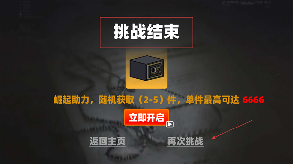 4、挑战结束后可点击【再次挑战】按钮重新进入战场,继续积累装备提升实战技巧。