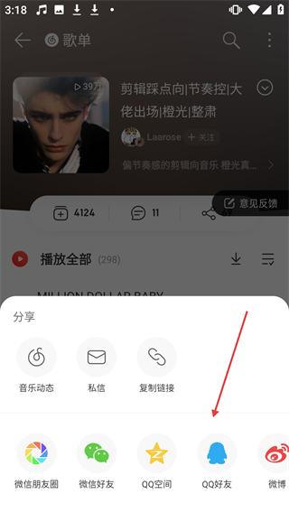 4、在分享选项中,选择【QQ好友】等渠道,完成歌单分享操作。