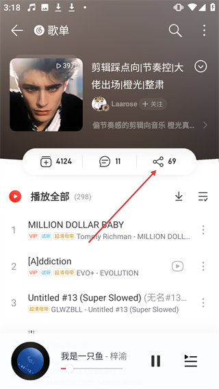 3、在歌单详情页,点击分享按钮,展开分享选项菜单。