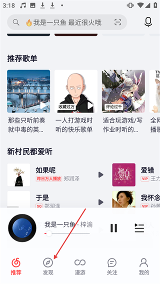 1、点击音乐APP底部的【发现】标签,进入发现页面。