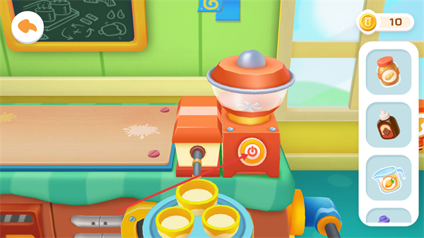 3、使用原料加工机器,点击启动按钮,将原料加工成冰淇淋半成品,注意按照步骤操作,确保加工的准确性。